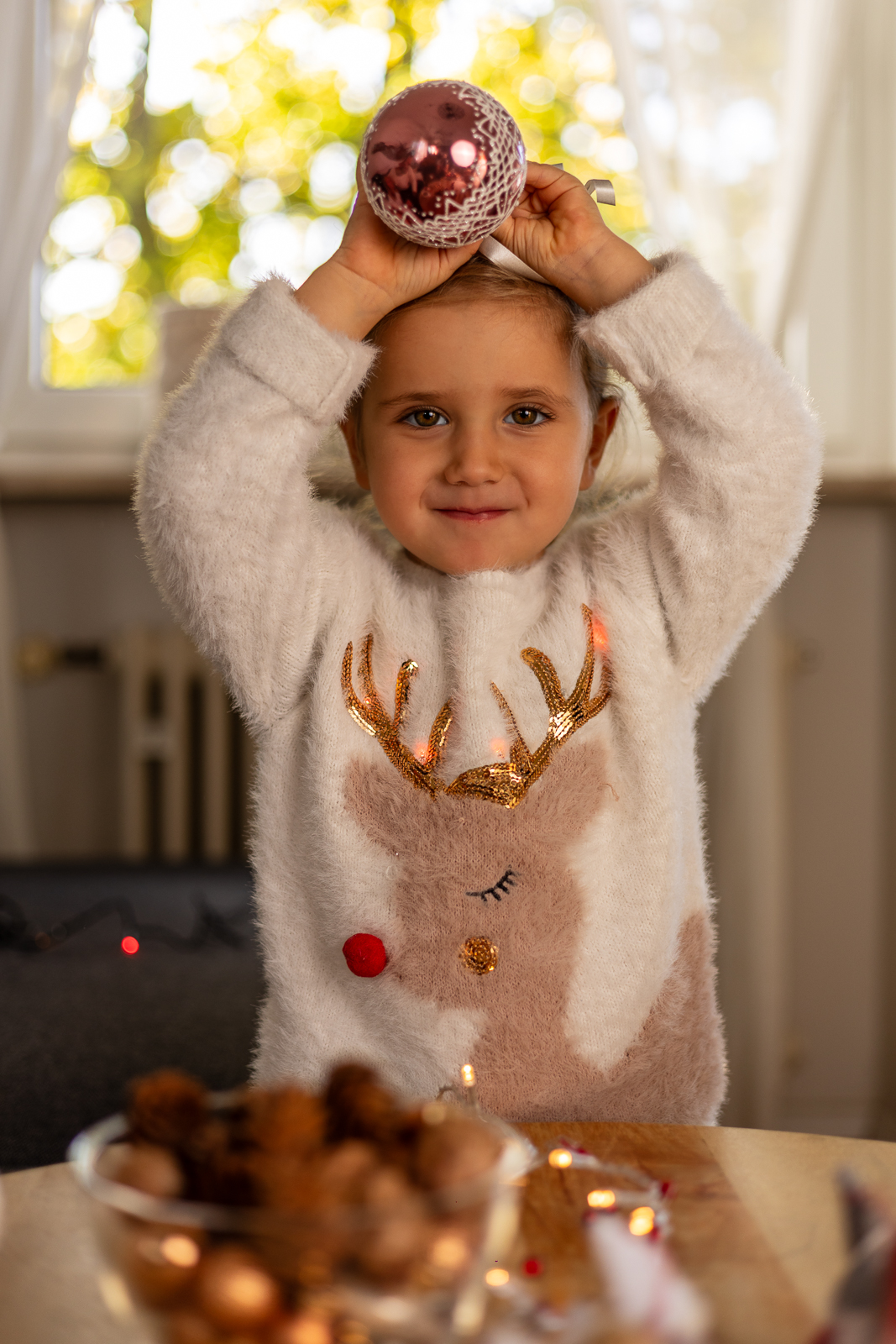 Für das Weihnachtsmini-Fotoshooting empfehle ich euch, gemütliche und aufeinander abgestimmte Outfits zu wählen. Warme, neutrale Farben wie Beige, Creme, Grau oder sanfte Töne wie Oliv oder Bordeaux passen perfekt zu den weihnachtlichen und neutralen Settings. Vermeidet am besten auffällige Muster oder knallige Farben, damit die Bilder harmonisch und zeitlos wirken. Besonders schön sind weiche Stoffe wie Strick, Wolle oder Samt, die den Wintercharme unterstreichen. Wichtig ist, dass ihr euch wohlfühlt – wenn die Kleidung bequem ist, können auch die Kinder entspannter vor der Kamera stehen! Zur Unterstützung erhaltet ihr vor dem Shooting einen Style-Guide von mir, mit hilfreichen Tipps, damit euer Look perfekt zu den Settings passt.